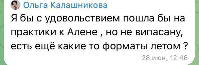 ~~~~ ЖЕНСКАЯ ВИПАССАНА — что это такое Я не стала ничего писать сразу на сообщения выше ⬆️так как понимала – ответу нужно дозреть. И теперь я готова поделиться им с вами. 💚💚💚💚💚💚💚💚💚 Я давно чувствовала, что августовская программа в Подмосковье будет совершенно особенной. Но полная картина того, как фундаментально по-другому это произойдет, сложилась у меня после ответа от Ольги. Дело в том, что я сама интуитивно ощущала – хочется больше внимания уделять мягким женским практикам, женским кругам, чувству соединеннности. С собой, с женщинами, с природой. И через отклик, который стал приходить от людей, я поняла – нужно делать именно это. Поэтому: Ретрит «Вкус жизни» – это не совсем випассана в общепринятом понимании. Это будет живая, мягкая программа, созданная специально для женщин. Где не нужно напрягаться, справляться со всем самой, идти на надрыве, лишь бы не выпадать из практики. 💚Здесь можно быть собой – живой, настоящей, с чувствами, с дыханием, с голосом. 💚Зд