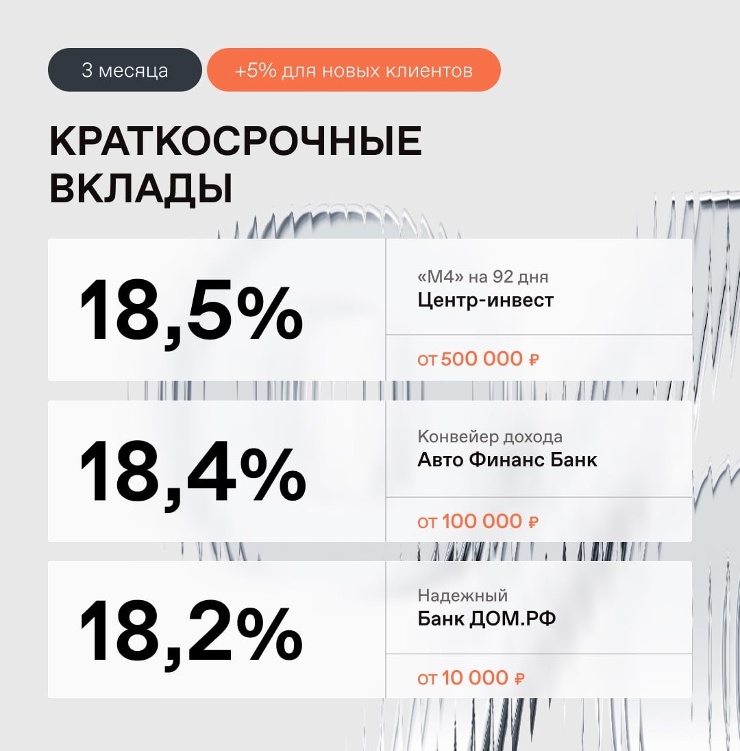 😎 Три варианта, как распорядиться деньгами: 1. Сложить наличкой в шкафчик 2. Потратить все под ноль 3. Забыть про них А есть четвертый, он самый интересный: открыть вклад.