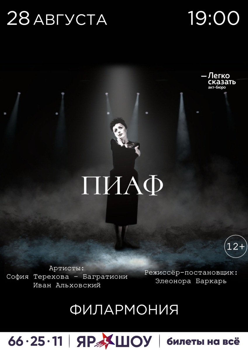 👏28 августа 2025 г. в 19:00 приглашаем на спектакль «Эдит Пиаф. Шипы и розы» о взлетах и падениях Великой певицы. О неиссякаемой силе маленькой некрасивой женщины, которая родилась на самой низшей социальной ступени, и сумела пройти свой путь до конца, завоевав сердца миллионов людей. https://yar-filarmoniya.ru/afisha/view.php?af_id=5710https://yar-filarmoniya.ru/afisha/view.php?af_id=5710 «Женщина на пределе», именно так трактуют для себя образ великой певицы создатели спектакля «Эдит Пиаф. Шипы и розы». Поет на пределе, любит на пределе, живет на пределе… и спектакль, который вмещает в себя самые яркие песни и сцены из жизни «маленького воробышка» исполняется артистами Иваном Альховским и Софией Тереховой на пределе… а как же иначе? Как можно по-иному передать всю ту любовь, талант и безумие Великой Эдит? Ждем вас на спектакле, в котором вы сможете окунуться в далекое прошлое, где на тротуаре Парижской улицы родилась Эдит Джованна Гассион. Вместе с актерами вы пройдете непростой п