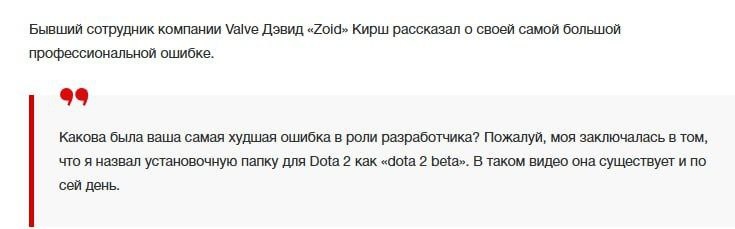 Кстати, папку с игрой уже никогда не переименуют. Это не из-за лени или некоторой сложности, а просто бессмысленно ввиду количества проблем с которыми столкнутся пользователи и разработчики. Во-первых, в самом коде Доты множество строк завязаны напрямую на название папки "dota 2 beta". То есть, они не переменную пути используют, а прямо захардкожено текущее название. Если это ещё возможно исправить и то, столкнувшись с большим количеством проблем, которые того не стоят, то появятся проблемы у стороннего софта. Многие кастомные программы, инструменты, пользовательские игры из воркшопа и тд так же завязаны на "dota 2 beta". Поэтому, можно сказать, что игра вечно будет в бете.