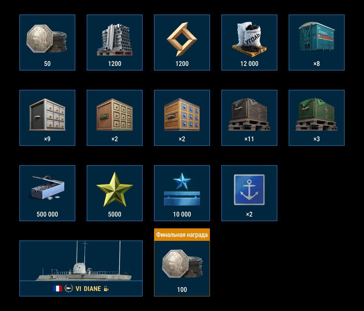 Боевой пропуск 25.7. Ранний доступ Базовый БП: 🇫🇷🔧VI Diane; 🪙150 французских жетонов; ⭐️1200 ед. стали; ⭐️1200 очков исследования; ⭐️12 000 ед. угля; 📦8 контейнеров «Ремонтный»; 📦9 контейнеров «Стандартные бонусы»; 📦2 контейнера «Особые бонусы»; 📦2 контейнера «Редкие бонусы»; 📦11 контейнеров «Стандартные сигналы»; 📦3 контейнера «Особые сигналы»; ⭐️500 000 кредитов; ⭐️5000 ед. свободного опыта; ⭐️10 000 ед. элитного опыта командиров; ⚓️2 слота в Порту. Улучшенный БП: 🎁премиум контейнер «Морское торжество»; 🪙 150 французских жетонов; ⭐️1500 ед. стали; ⭐️1500 очков исследования; ⭐️15 000 ед. угля; 🎁1 Суперконтейнер; 📦9 контейнеров «Особые бонусы»; 📦7 контейнеров «Редкие бонусы»; 📦3 контейнера «Элитные бонусы»; 📦8 контейнеров «Стандартные сигналы»; 📦9 контейнеров «Особые сигналы»; 📦4 контейнера «Редкие сигналы»; ⭐️1 000 000 кредитов; ⭐️20 000 ед. свободного опыта; ⭐️60 000 ед. элитного опыта командиров. 🌐https://korabli.su/ru/news/sales-and-events/battle-pass-in-257/