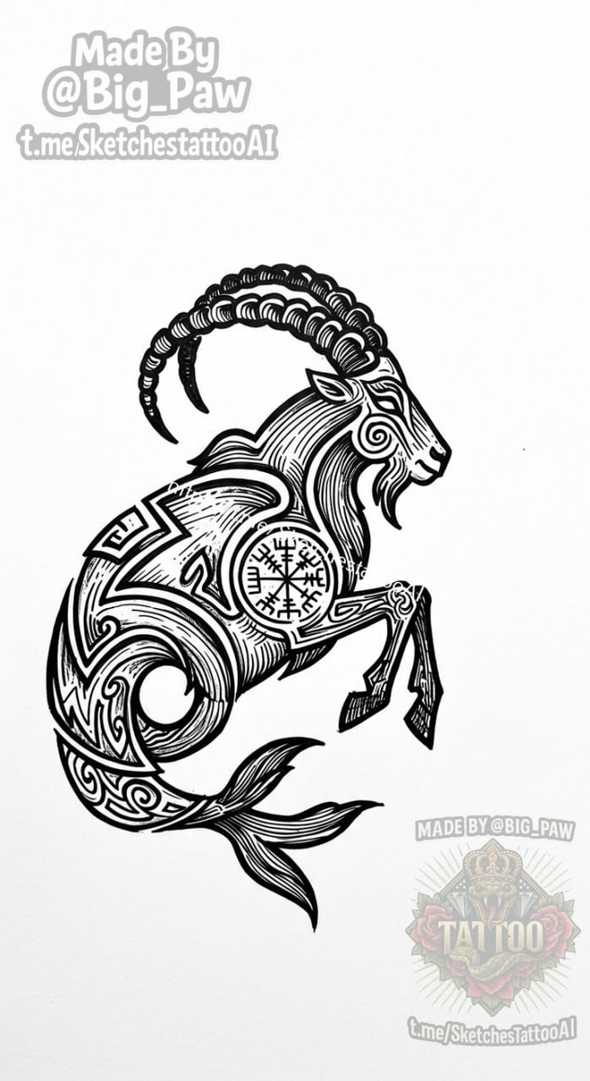 #2583 Подборка по запросу подписчика - интересует эскиз татуировки чёрные на белом фоне, знака зодиака козерог в скандинавском стиле