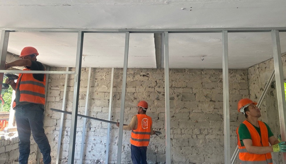 Липецкие строители в Зарянской школе ДНР приступают к внутренней отделке здания