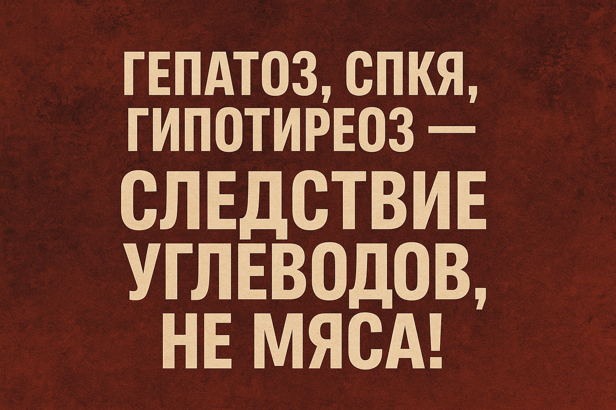 Устоявшееся, но ошибочное убеждение о том, что животные продукты, особенно мясо, являются причиной множества хронических заболеваний, привело к тому, что истинные виновники этих недугов оставались незамеченными. Неуклонный рост заболеваемости гепатозом, синдромом поликистозных яичников (СПКЯ) и гипотиреозом на фоне рекомендаций по ограничению мяса и увеличению углеводов является ярким подтверждением этого заблуждения.