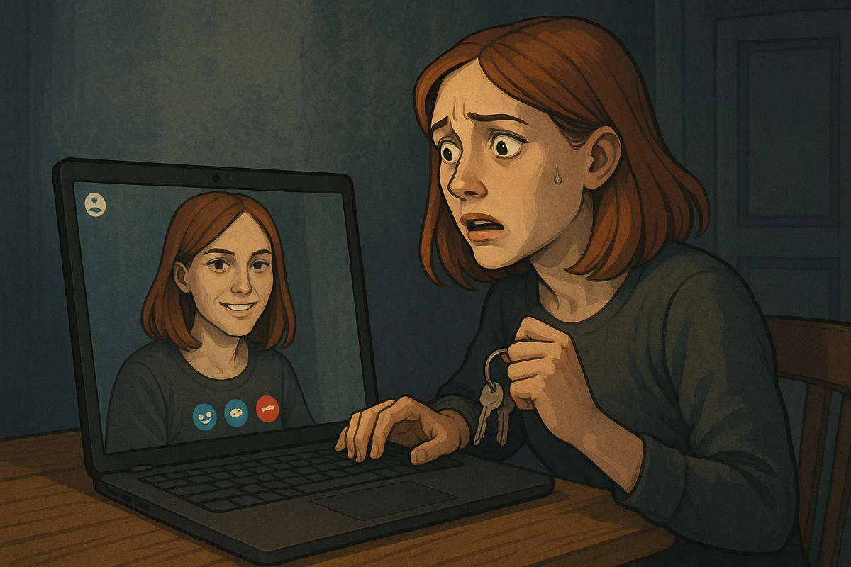 Мой бывший одноклассник, Саша, уже несколько лет живёт в Америке. Мы поддерживали связь через сообщения, обмениваясь новостями и воспоминаниями о школьных деньках. Пару дней назад он вдруг предложил созвониться по Skype. Я в этой программе не ас — знаю только, как включить видеозвонок и отправить смайлик, но не более. Ну, это так, чтобы вы лучше поняли, что было дальше. И вот, сидим мы, переписываемся, и он пишет: «Давай в Skype, поболтаем живьём». А я, конечно, не могу просто так взять и появиться перед ним на экране — всё-таки три года не виделись! Решила, что надо хотя бы привести себя в порядок. «Сейчас, — говорю, — минутку». И убежала в ванную — волосы поправить, лицо умыть, ну, вы понимаете. Вернулась минут через пятнадцать (нет, я не красилась всё это время, просто засиделась, разглядывая себя в зеркале). Сажусь за ноутбук, машинально пишу: «Давай в Skype». И тут приходит его ответ: «Юль, мы же только что с тобой говорили». Я замерла. Сердце заколотилось, в голове — туман. Пере