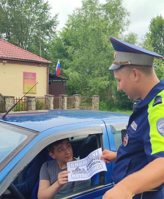 ✍️Сотрудники Госавтоинспекции МО МВД России "Неманский" провели информационную акцию "Смотри по зеркалам" 🏍 Инспекторы призывали водителей автомобилей внимательней относиться к водителям двухколёсного транспорта, поскольку ДТП с их участием зачастую имеют самые тяжкие последствия. 🔛Также участникам акции напомнили о необходимости соблюдать скоростной режим, особенно во дворах домов и придворовых территориях, и раздали тематические памятки.