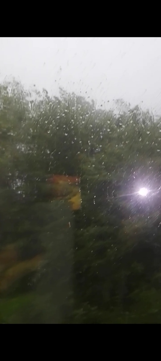 Дождь был такой силы, откуда то сверху,,, придавливая деревья к земле.