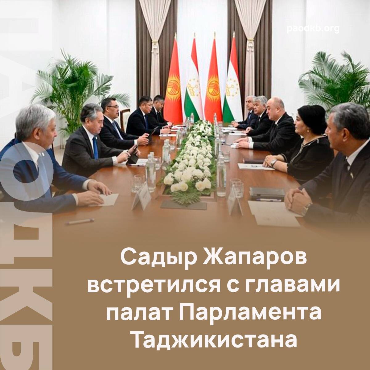 🇰🇬🇹🇯 9 июля Президент Кыргызстана Садыр Жапаров в рамках государственного визита в Таджикистан провел встречи с Председателем Национального совета – верхней палаты Парламента Таджикистана – Рустами Эмомали и Председателем Палаты представителей Высшего собрания Республики Файзали Идизодой. 🔖 Перед началом переговоров Президента КР ознакомили с новым зданием Парламента Таджикистана, где он оставил запись в книге почетных гостей. 👥 В ходе переговоров в Душанбе стороны выразили обоюдную готовность к расширению межпарламентского взаимодействия. 💬Рустами Эмомали, приветствуя кыргызского лидера, назвал визит важным событием, открывающим новые возможности для сотрудничества на всех уровнях. 🔈 Файзали Идизода подчеркнул важность углубления добрососедских отношений между двумя странами. Он также сообщил о создании в Парламенте Таджикистана новой депутатской группы дружбы с Кыргызстаном. ⚡️ Садыр Жапаров отметил, что Кыргызская Республика придает особое значение парламентскому треку,