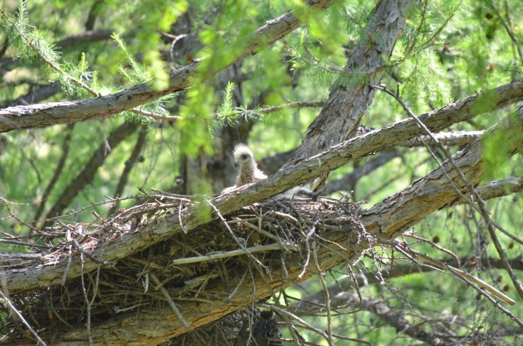 Птенец чёрного коршуна попозировал прямо в гнезде Пернатого малыша заметили сотрудники Саяно-Шушенского заповедника.