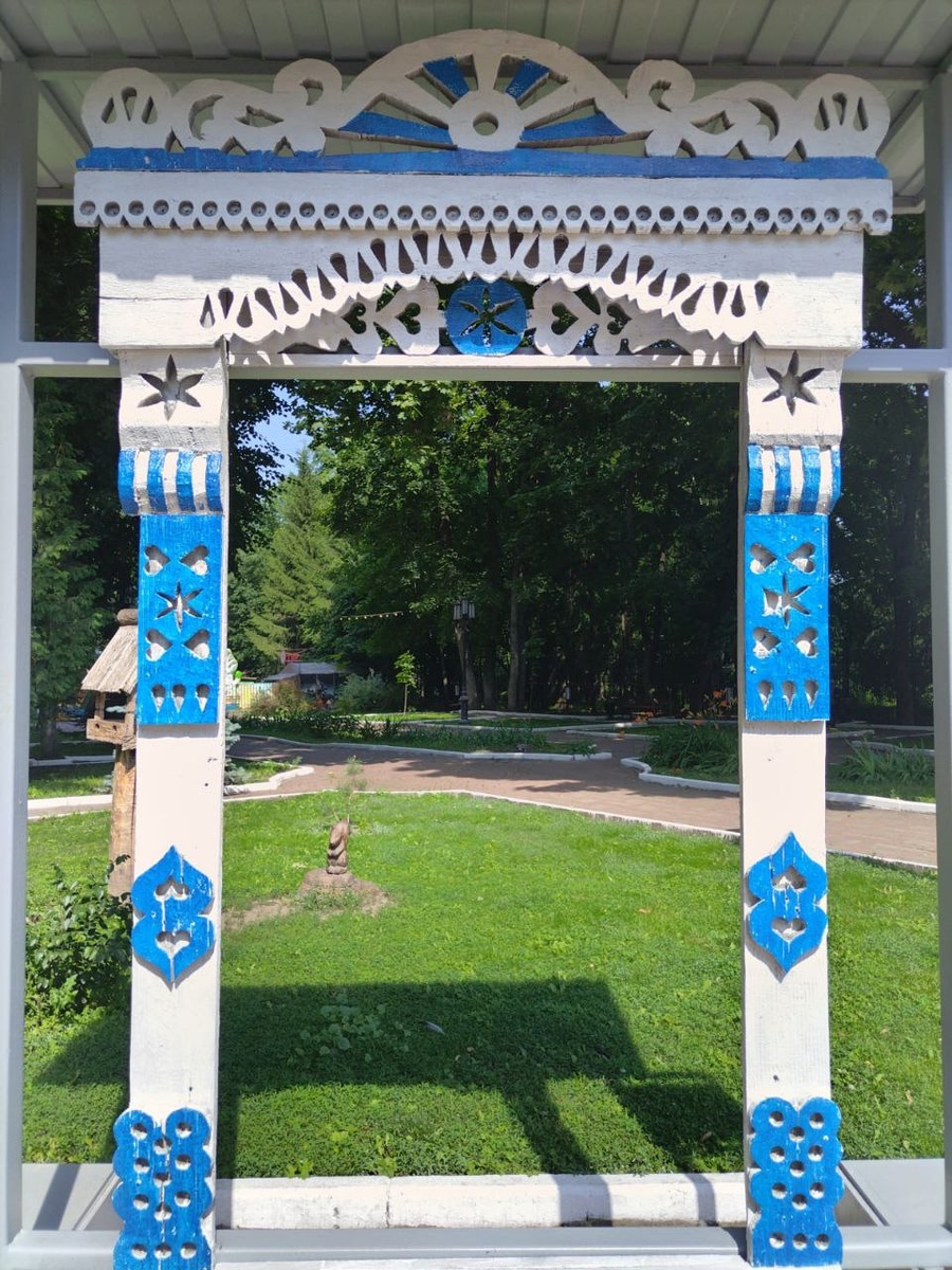 В городском парке выставка наличников. У нас в селе ещё есть старые дома с наличниками. Какие же они нарядные)))