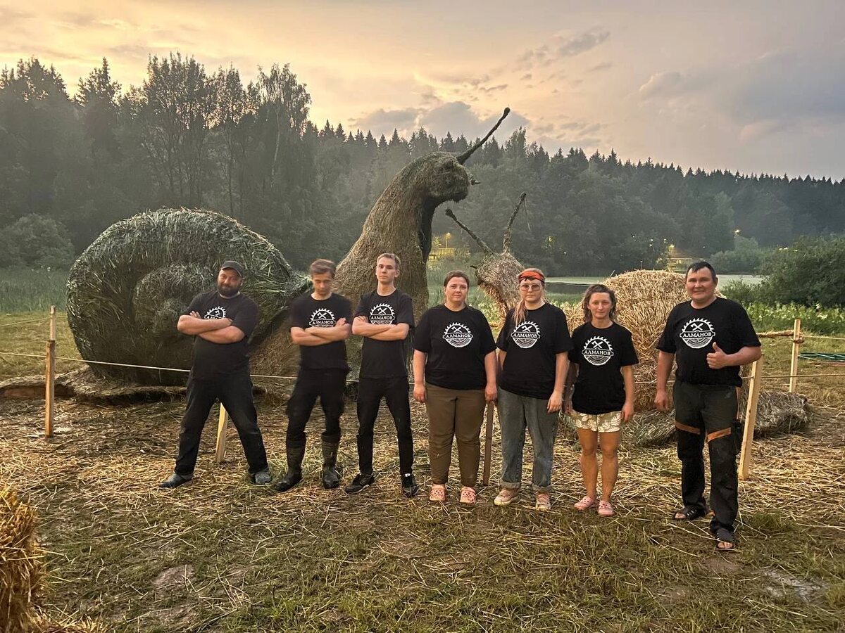 Владимир Алманов с командой мастеров завершили работу над скульптурами из соломы в лесопарке «Загорское море