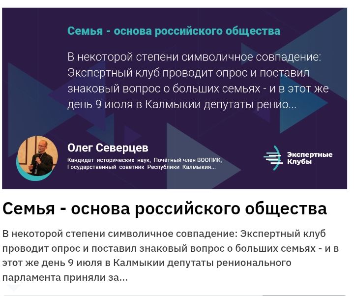 Мой экспертный комментарий на сайте Экспертного клуба (площадка ЭИСИ ) по теме: "Семья - основа российского общества". В некоторой степени символичное совпадение: Экспертный клуб проводит опрос и поставил знаковый вопрос о больших семьях - и в этот же день 9 июля в Калмыкии депутаты регионального парламента приняли законопроект, подчеркивающий значимость роли родителей в обществе, повышающий авторитет и уважение к семьям с большим количеством детей, поддерживающий семейные ценности и традиции, укреплюящий общественный статус многодетных семей. А их, многодетных семей, в республике более восьми с половиной тысячи и воспитывается в них двадцать восемь тысяч детей. Законопроект, принятый сегодня, учреждает в Республике Калмыкия День многодетной семьи. Цель этой законодательной новеллы в регионе - повысить престиж многодетной семьи и укрепить институт семьи. Как сообщается в пояснительной заптске к принятому проекту закона, "в 2019-2024 годы число многодетных семей в республике вы