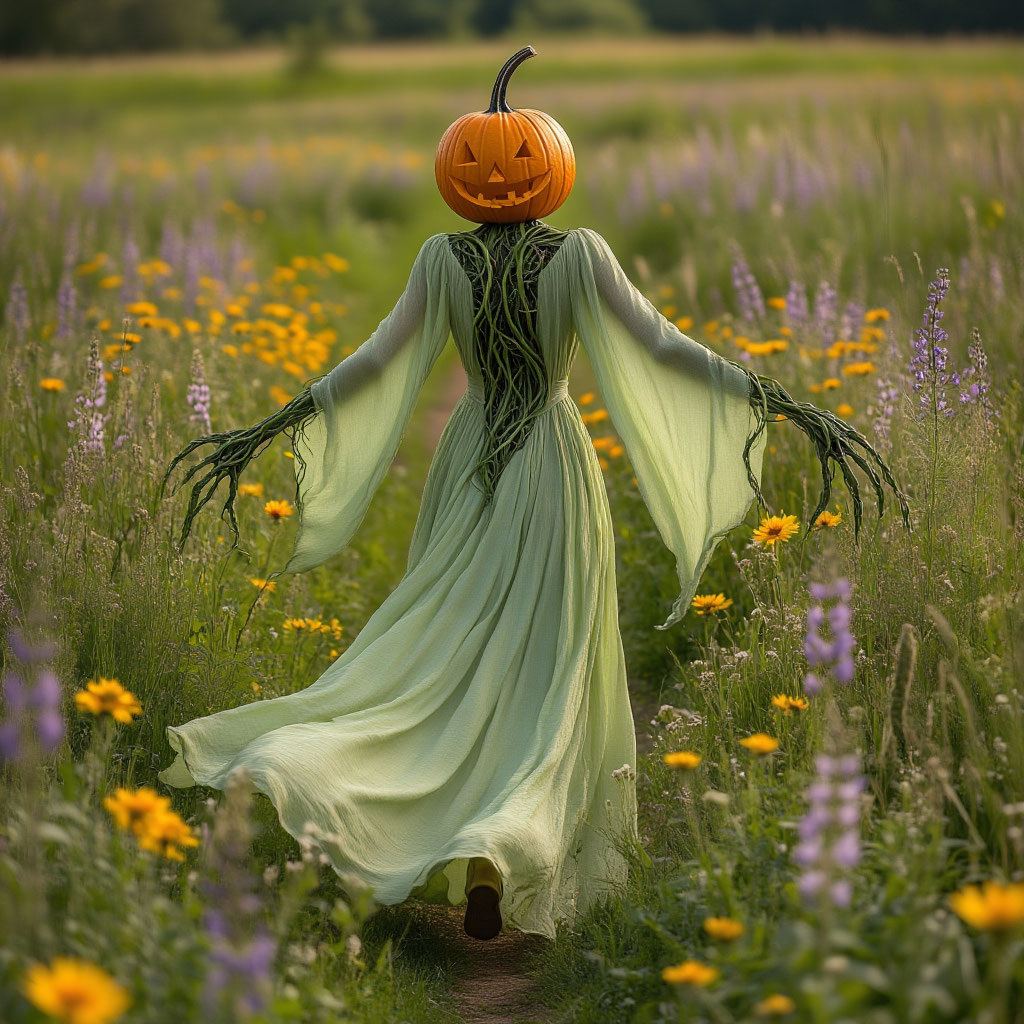 С бешено колотящимся сердцем Томми подкрался ближе. Как только его взгляд упал на ближайшую тыкву, она внезапно поднялась на толстых извивающихся усиках. Но это была уже не тыква. Теперь у неё были руки, ноги и лицо — вытянутая тыквенная голова с разинутым ртом и пустыми глазницами. Существо издало булькающий вой и бросилось на Томми.