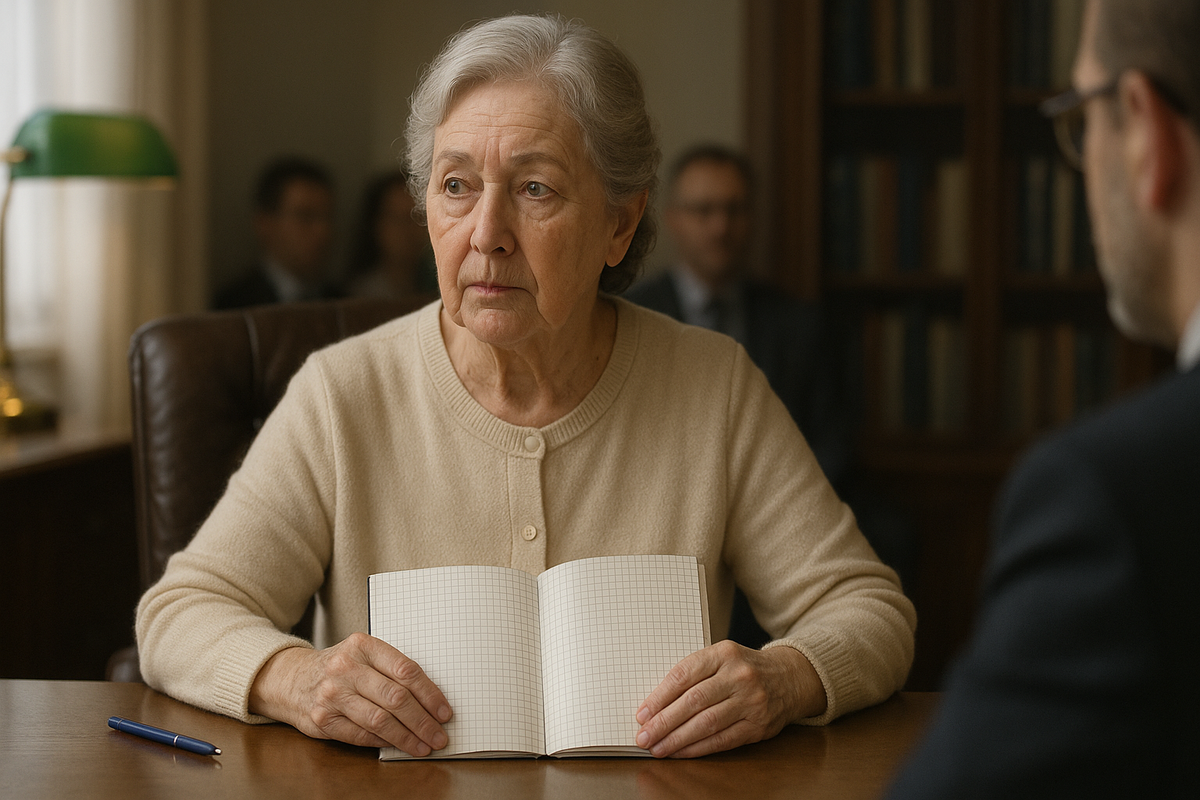 В кабинете с кожаными креслами и большим дубовым столом их ждала Галина. Сидела прямо, руки сложены на коленях, рядом лежала знакомая тетрадь.