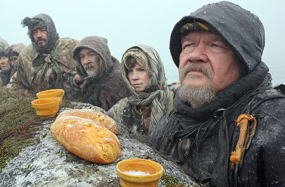 К полудню жители деревни стали молча стекаться к берегу. Не было ни разговоров, ни суеты. Старики и старухи, несколько семей средних лет, даже молодежь, которая обычно посмеивалась над «стариковскими бреднями». Каждый нес свой дар: кто-то каравай, кто-то краюху черного хлеба, но у всех была соль. Они выкладывали свои подношения на большой плоский валун у самой кромки воды, который здесь называли Столом.