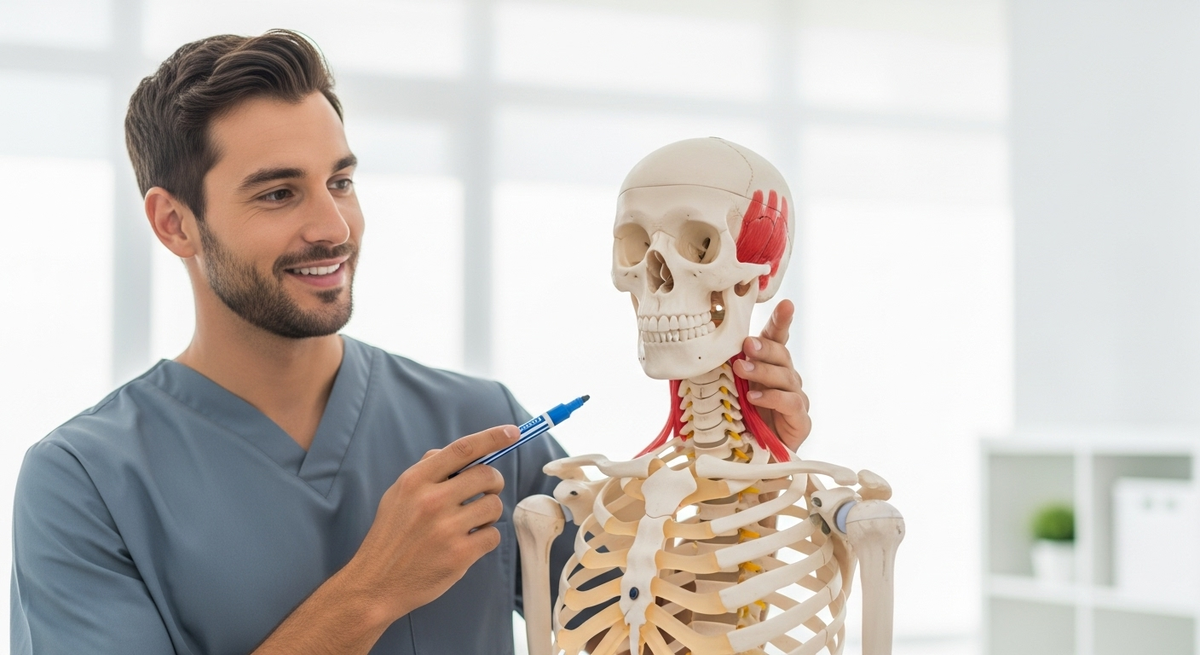 Добрый вечер, дорогие друзья! Давайте сегодня поговорим об одной из самых частых проблем — головной боли, шуме в ушах и головокружении. Многие думают, что всему виной остеохондроз, но я хочу показать вам, что настоящая причина часто кроется в мышцах, которые мы можем и должны тренировать. Перед тем как мы начнем, по нашей доброй традиции, поддержите меня лайком и комментарием — это очень помогает развивать канал и готовить для вас новые полезные материалы. Ну что ж, садитесь поудобнее, мы начинаем наше путешествие в мир здоровой шеи! Наша голова тяжелая, и чтобы удерживать ее в правильном положении, работает целая группа мышц. Проблема в том, что из-за нашего образа жизни — постоянного взгляда в телефон или компьютер — возникает серьезный дисбаланс. Передние мышцы шеи (лестничные) и мышцы у самого основания черепа (короткие разгибатели) становятся короткими и спазмированными. А вот длинные мышцы-разгибатели сзади, наоборот, ослабевают и растягиваются. Этот дисбаланс и приводит к сдавли