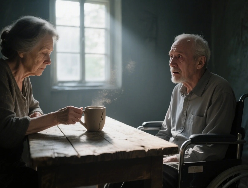 Зашли в дом. Гриша сидит в своем кресле у окна. Услышал шаги, обернулся. Увидел меня, потом ее... И застыл. Лицо будто маска. Ни злости, ни радости. Ничего. Только в глубине потухших глаз что-то на миг мелькнуло и снова скрылось.