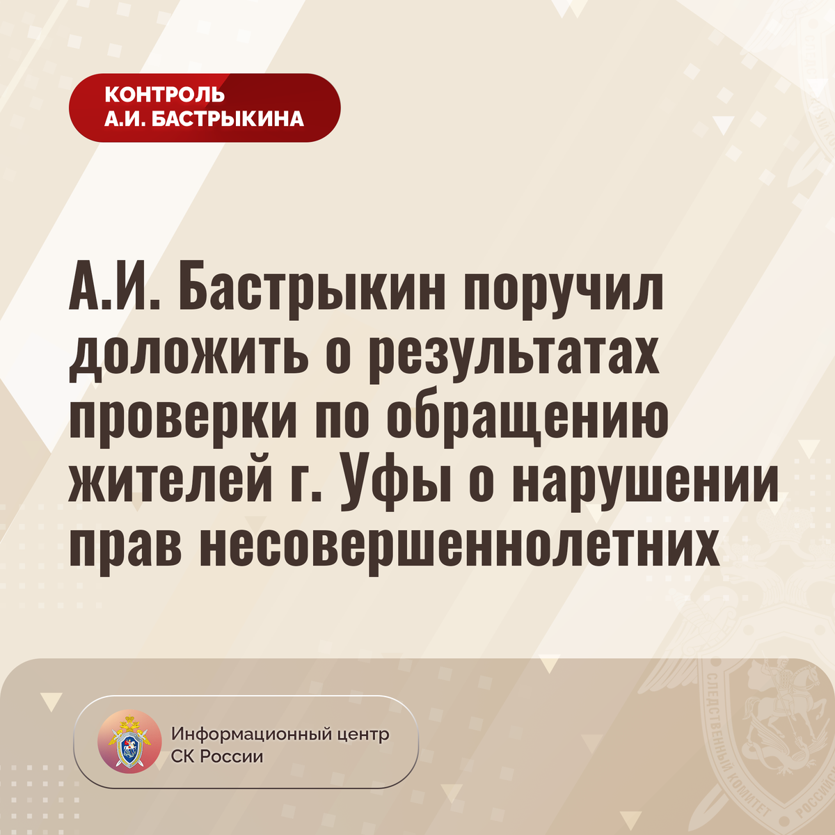 А.И. Бастрыкин поручил доложить о результатах проверки по обращению жителей г. Уфы о нарушении прав несовершеннолетних