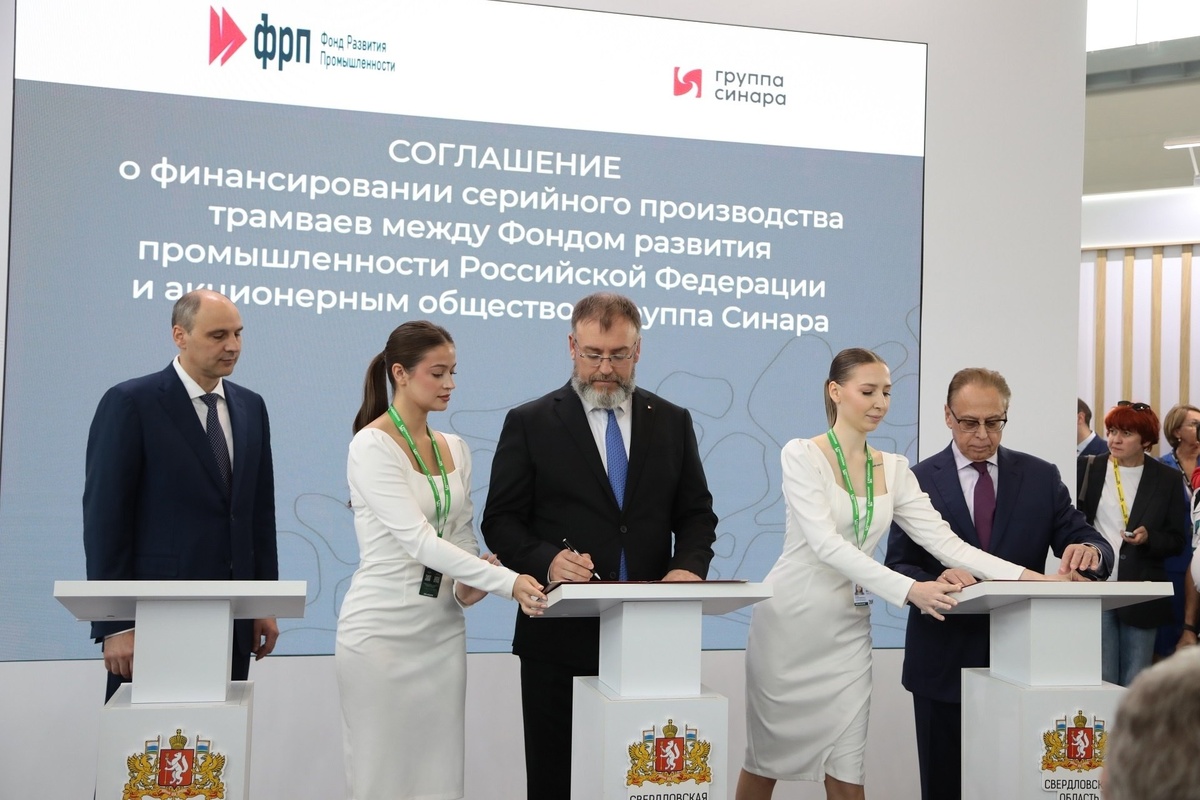 Денис Паслер договорился с Группой Синара о сотрудничестве в производстве в Екатеринбурге импортонезависимых трамваев Врио губернатора Свердловской области Денис Паслер и президент Группы Синара Михаил Ходоровский на XV Международной выставке ИННОПРОМ заключили соглашение о сотрудничестве в сфере развития городского электрического транспорта в муниципалитетах региона. Речь идёт о производстве современных импортонезависимых трамваев, модернизации имеющегося трамвайного парка, а также развитии производственной кооперации Группы Синара и предприятий региона. «Проекты, направленные на развитие общественного транспорта, качественно меняют жизнь людей: повышают комфорт и доступность транспорта, сокращают время в пути, способствуют уменьшению загрязнения воздуха. Такой подход соответствует современным требованиям устойчивого развития и подчеркивает стратегическое значение внутреннего производства», – сказал Денис Паслер. Компания «Синара – Городской рельсовый транспорт» налад Показать полн