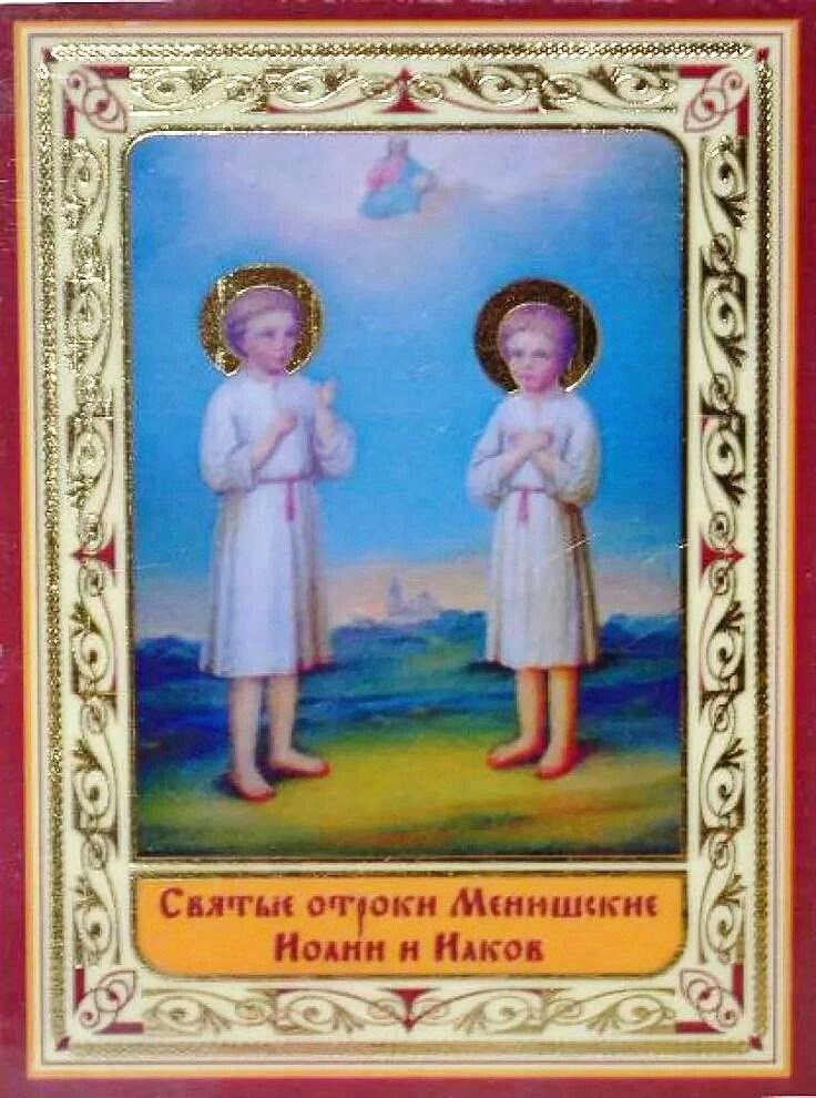 7 июля Православная Церковь чтит память правв. отроков Иакова и Иоанна Менюжских (1566-1569). 🌾🌾🌾🌾🌾🌾🌾🌾🌾🌾 Иаков и Иоанн Менюжские — два малолетних брата, праведники православной церкви, входят в Собор Новгородских святых. О братьях Иакове и Иоанне существует упоминание в Кратком сказании о святых XVIII века, записанное с устных легенд о них. Согласно ему, их родителей звали Исидор и Варвара, и вместе с ними жили два малолетних сына. Старшим из братьев был Иоанн пяти лет, а младшим — трёхлетний Иаков. Убили мальчиков лиходеи, задумавшие ограбить жилье. Год смерти является приблизительным. Первоначально братьев похоронили в приходской церкви святителя Николая, находившейся в Медведском погосте. Однако позднее гробы с их телами были обнаружены охотниками в лесу у Каменского озера, рядом с деревней Менюша. Гробы были возвращены в Никольскую церковь. Но после того как братья приснились охотникам с указанием перенести их тела в другое место на Менюше, братья были перезахоронены. По