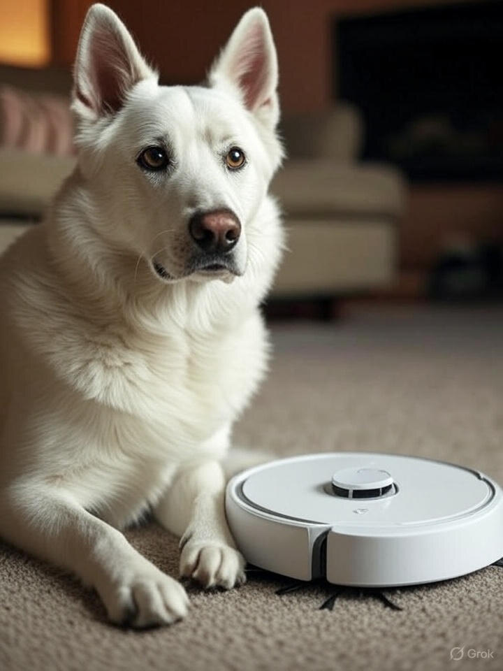 Но потом **поехал**. Без предупреждения. Без звука. Просто выехал на середину комнаты, повернулся на месте и — вжжжжик — покатил по ковру. Прямо по моей шерсти. По **моей**. По той самой, которую я с любовью оставляю, чтобы дому не было пусто.