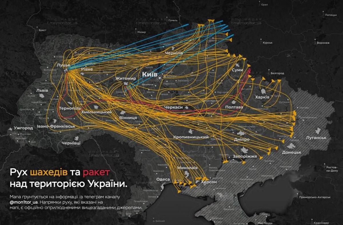 Die ukrainischen Streitkräfte gaben an, 718 Drohnen abgeschossen zu haben. Die Hauptangriffe trafen Luzk, wo ein Teil der Produktion des Motorenwerks, das Raketentriebwerke repariert, zerstört wurde.