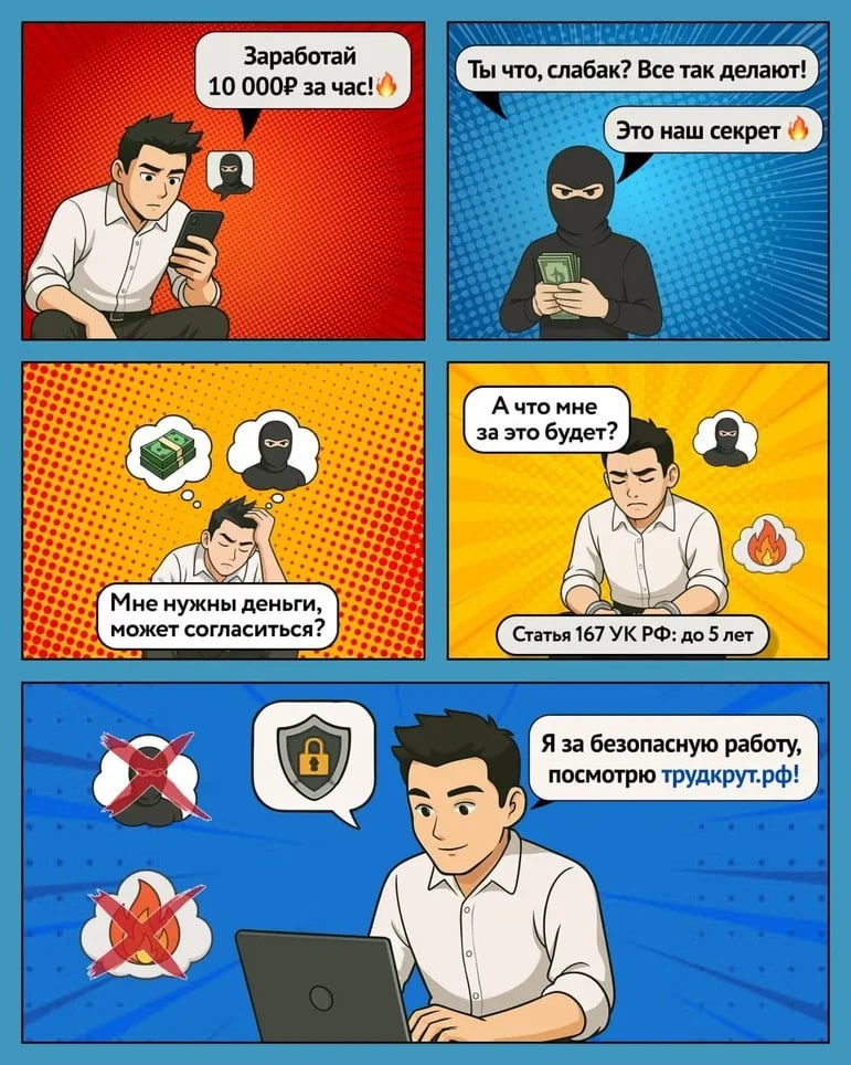 ❌ Враг вербует подростков Злоумышленники заманивают детей обещаниями «лёгкого заработка», а потом толкают на ужасные преступления: поджоги и теракты. Итог — сломанная жизнь и тюремный срок. Помните: «Лёгкие деньги» в интернете часто приводят к очень тяжелым последствиям. Будьте бдительны и не доверяйте сомнительным предложениям! В случае вербовки — звони на горячую линию МВД: 8 (800) 222-74-47 ————— Поддержите канал Подпиской на "Сыны Отечества" или Голосом за канал ✅ подписаться |⚡️проголосовать 📲Наш проект в социальных сетях: Вконтакте, Одноклассники, Дзен, RuTube