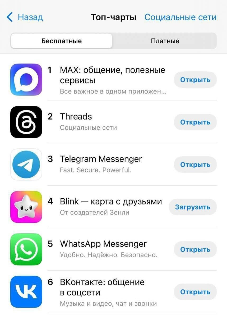 Мессенджер МАХ возглавил раздел «Социальные сети» в российском AppStore