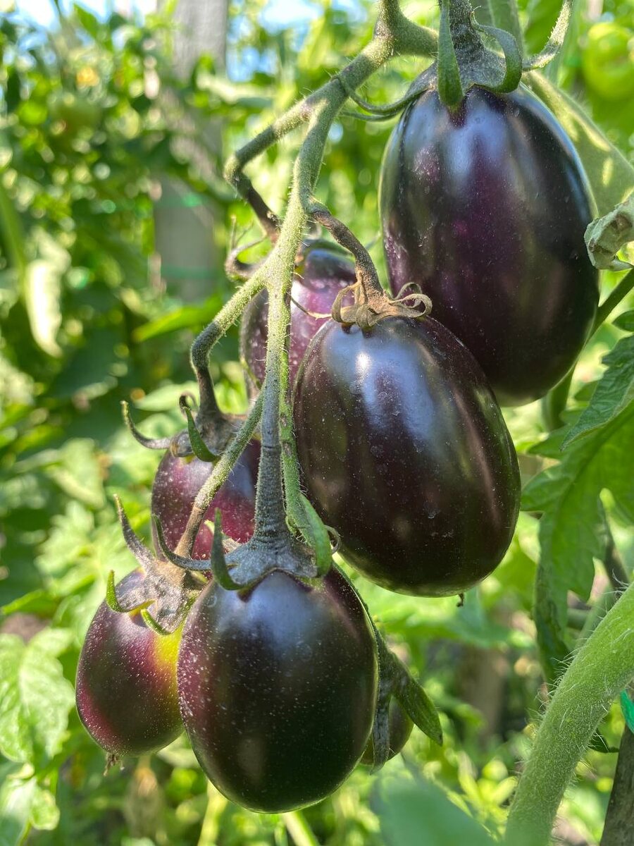 Томат Deep Purple. Красивый кистевой сорт, плоды практически полностью покрыты антоцианом.
