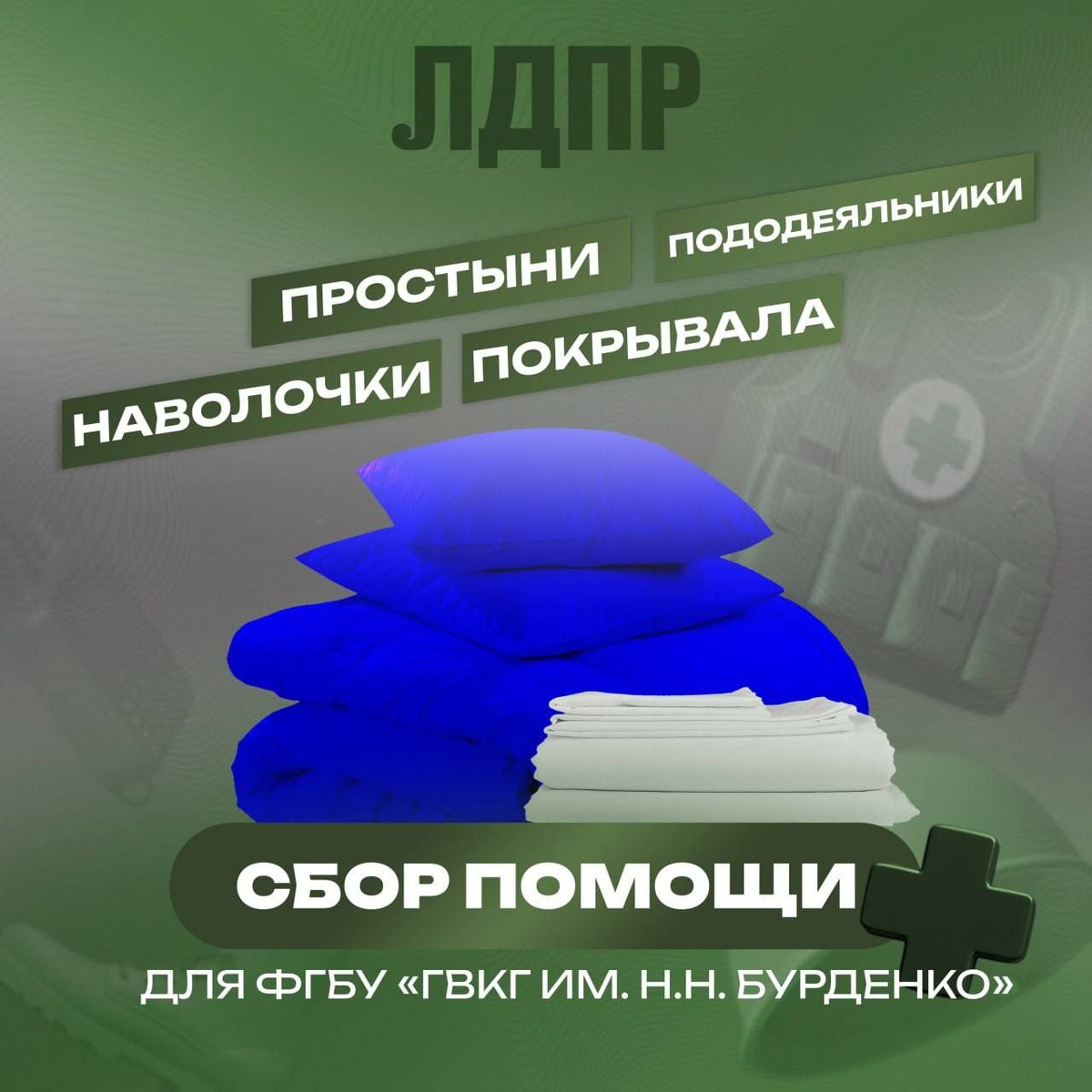 📢 Объявляем о старте акции по сбору гуманитарной помощи для военнослужащих, находящихся на лечении в филиале ФГБУ «ГВКГ им. Н.Н. Бурденко». 🤝 Призываем всех неравнодушных жителей Москвы принять участие в этой важной инициативе. Нашим героям, защищающим нашу страну, сейчас как никогда нужна наша поддержка и забота. 🛌 Что требуется: Наволочки Простыни Покрывала Пододеяльники 📍Как принять участие: Принесите необходимые постельные принадлежности в приемную ЛДПР (адрес: Краснопролетарская 6а,с.1). Ваша помощь будет передана непосредственно в госпиталь и станет ощутимой поддержкой для наших военнослужащих. 🙏 Каждый вклад важен! Вместе мы можем сделать пребывание наших защитников в госпитале более комфортным и уютным. Спасибо за вашу отзывчивость и поддержку! 📅 Сроки проведения: с 9 по 25 июля 2025 года.