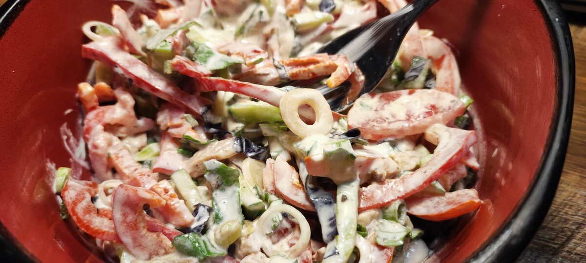 Остывший - не значит невкусный :) Недавно я писала здесь рецепт, по которому обычно мариную мясо для шашлыков. Так уж вышло, что в этом сезоне мы наслаждаемся шашлыками почти каждые выходные. А еще так вышло, что я вечно боюсь, что на всех не хватит, и по итогу делаю столько, что мы потом едим это мясо еще 3 дня :) Как-то раз, вы не поверите, оно мне надоело. И я вспомнила, что в банкетном меню ресторанов часто есть некий мясной салат, который будто бы можно попробовать сделать со вчерашним шашлыком. Рецептов подобных салатов очень много и они все разные. Что именно было в том салате, который мне понравился, я не помнила. Помнила только, что точно есть перец, огурец, лучок и мясо. Они и стали основой... Если вам понравится рецепт, ставьте палец вверх и пишите комментарии, мне интересно ваше мнение! Можете также задавать вопросы, я обязательно на них отвечу, все подскажу. И подписывайтесь на канал, впереди еще много рецептов на все случаи жизни! :) 1. Все овощи и зелень промойте и обсуш