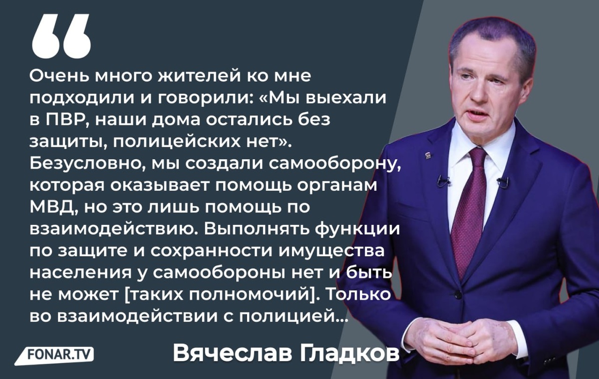 На оперативном совещании правительства Белгородской области в понедельник, 7 июля, губернатор Вячеслав Гладков заявил, что имущество людей в приграничье плохо защищают полицейские.