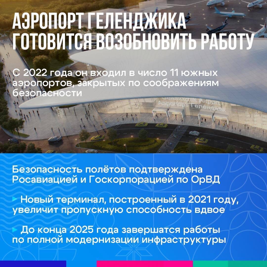Губернатор Кубани Вениамин Кондратьев поблагодарил Правительство РФ за решение и отметил важную роль воздушной гавани в развитии туризма. Восстановление внутренних рейсов повысит транспортную доступность региона. С 2022 года ближайшими к Анапе городами с работающими аэропортами были Сочи и Минеральные Воды, время в пути до которых занимало порядка 7,5 часов. С возобновлением работы аэропорта Геленджика анапчанам и гостям курорта добраться до воздушной гавани можно будет примерно за 2 часа.