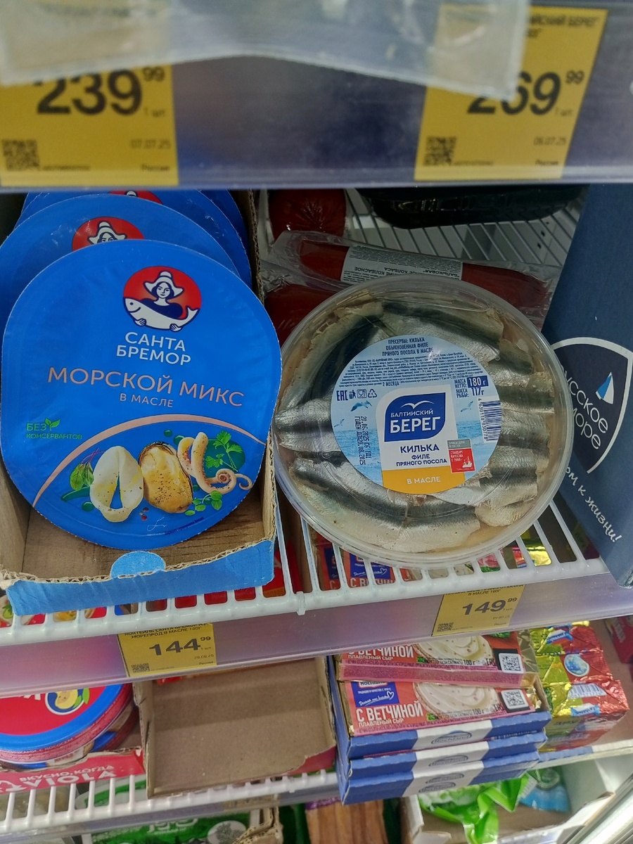 Нет, ну честное слово, я уже просто не успеваю покупать все новинки, что предлагает нам "Красное&Белое", вроде и без того каждые дня три заглядываю за покупками, а все равно каждый раз попадается хотя бы одна новинка. Дабы не тратить ваше время на мизерное количество обновлений в ассортименте, я подождала момента, пока соберется целая подборка, а потому теперь готова поделиться всем, что нашла в магазине в течении недели. Никаких анонсов новинок у магазина нет, никаких баннеров или листовок они не предлагают, так что привезенные впервые продукты нужно искать самостоятельно, а это не всем удобно. И каждый раз еще не знаешь где именно высматривать: то ли в холодильнике, то ли у кассы, то ли и вовсе среди игрушек или чего-то такого. Мои находки актуальны на начало-середину июля, но, думаю, что-то останется и на длительное время, все же в этот раз наконец-то уделили время продуктам, а не лимитированным товарам для детей. Настолько давно не видела ничего нового среди рыбной продукции, что у