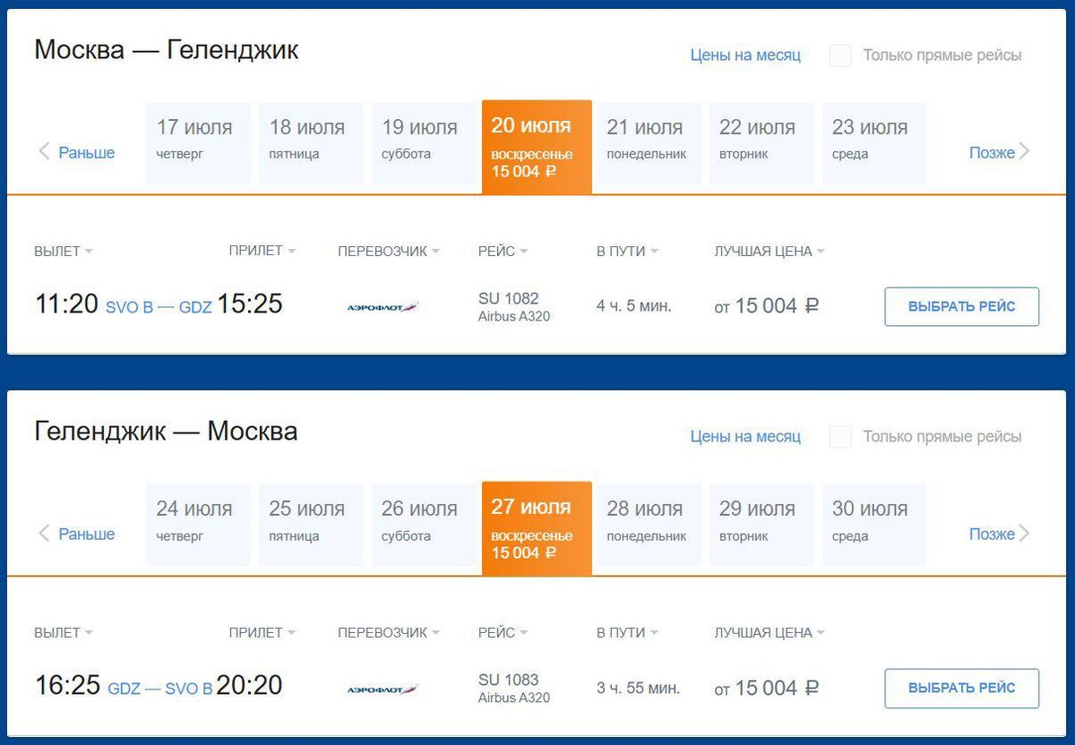 «Аэрофлот» открыл продажу билетов из Москвы в Геленджик. Стоимость полета в одну сторону – от 17 800 руб., туда-обратно – минимум 30 тыс. руб. на человека.
