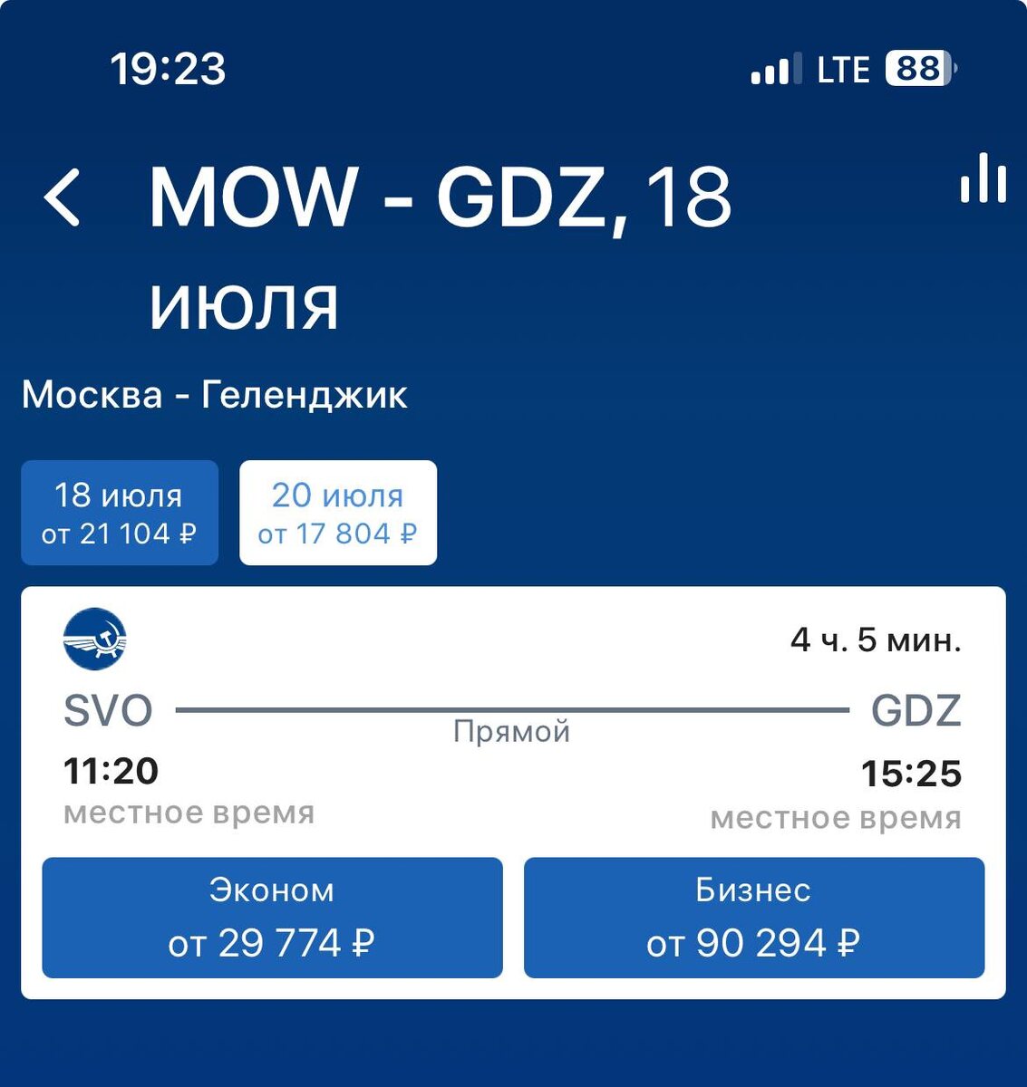 Менее чем за час цена билета из Москвы в Геленджик на первый рейс выросла почти на 12 тысяч рублей