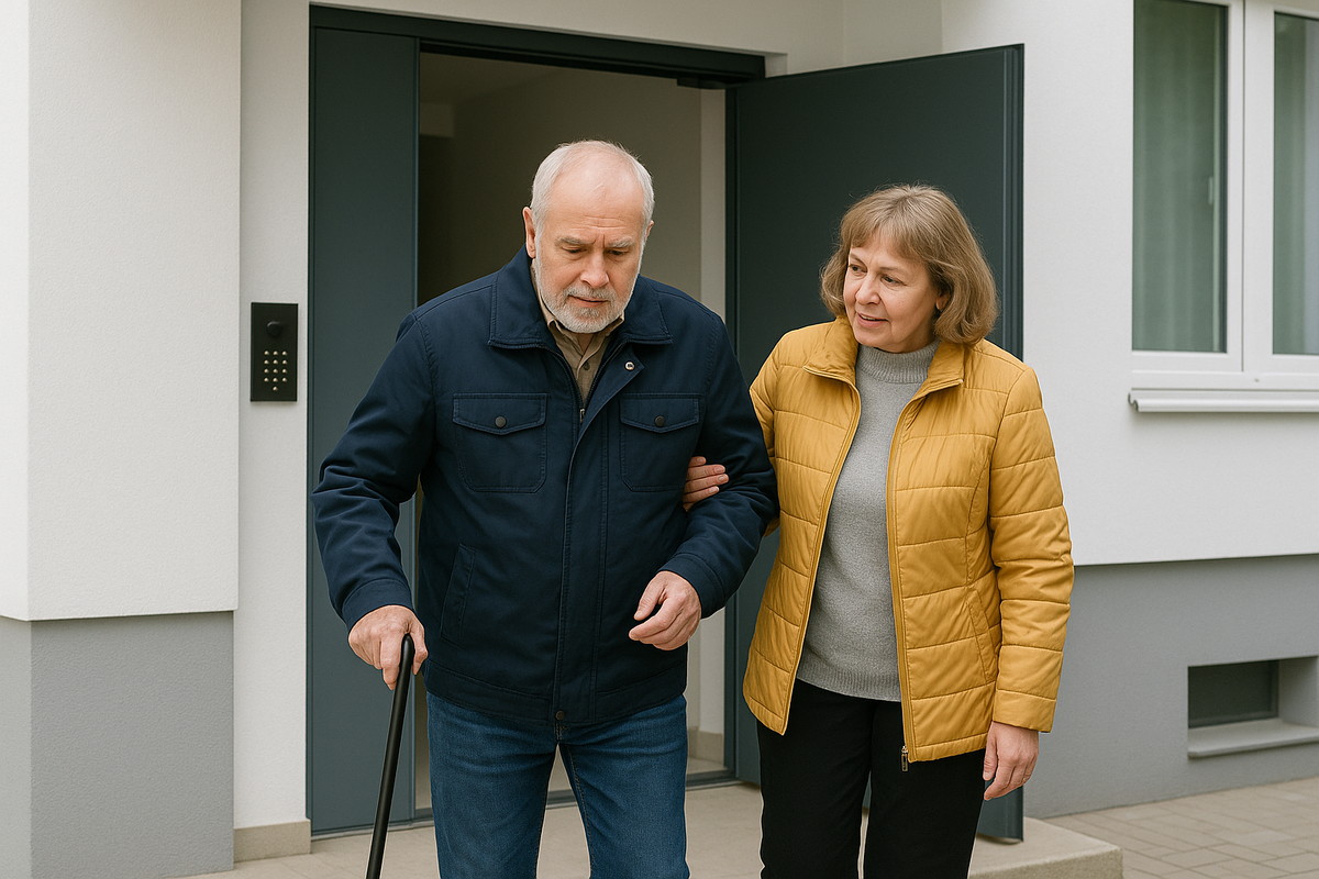 Подъезжаю к подъезду, вижу мужчину лет шестидесяти. Стоит, опираясь на трость, рядом с ним женщина примерно его возраста. Она помогает ему сесть в машину, заботливо поправляет куртку, что-то тихо говорит на ухо.