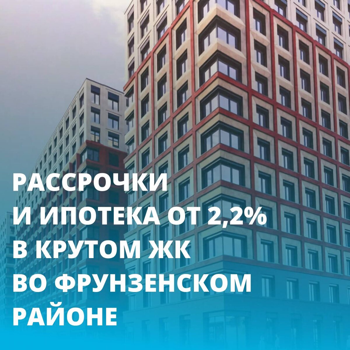 Во Фрунзенском районе — топовый ЖК с условиями, которые ещё можно застать: ипотека от 2,2% и рассрочки от застройщика. С фиксированными платежами от 25 000₽ в месяц. Без удорожания. Без сюрпризов.