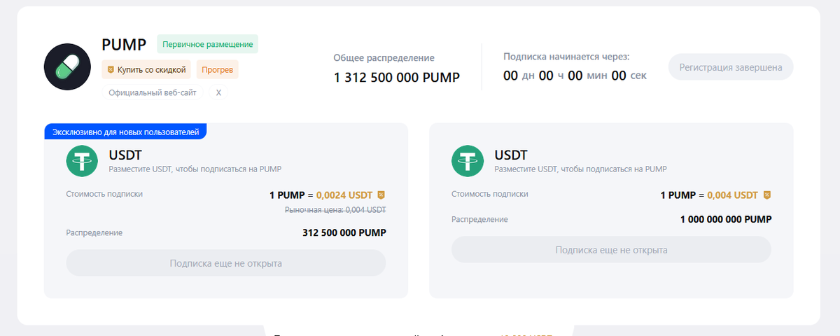 Участие в Launchpad - это простая процедура, не требующая торговли или сложных действий. Всё устроено как аукцион: вы «подписываетесь» на токены PUMP, временно блокируя свои стейблкоины USDT. После окончания подписки вам распределяются токены в зависимости от суммы участия.