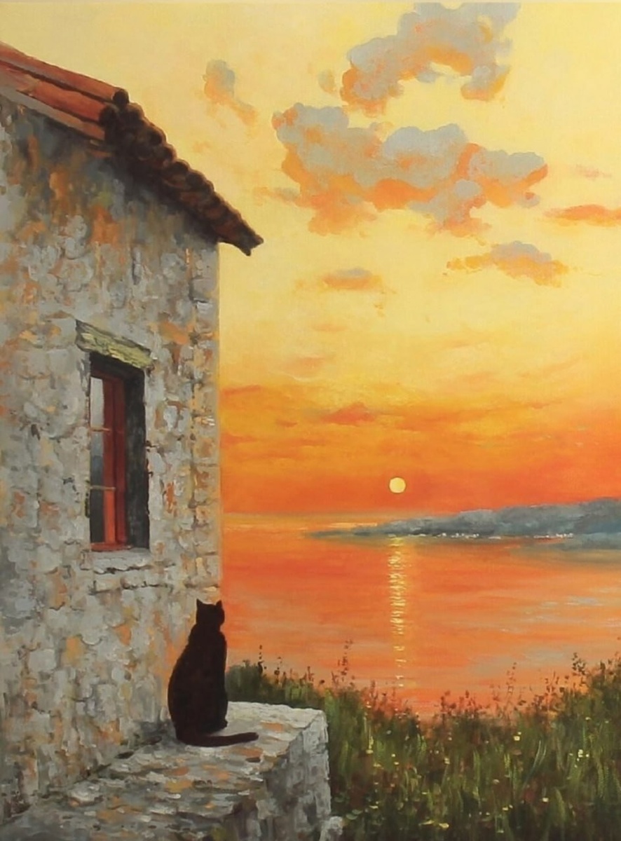 Лето, не так быстро, пожалуйста!!! 🐾 Олег Мякотин. Наедине с закатом Кот Пикассо 🐈⬛ Искусство