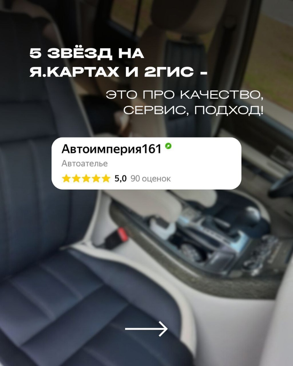 5⭐️ на Яндекс Картах и 2ГИС - не просто цифра, а результат нашей работы! Мы благодарны каждому, кто доверил нам свой автомобиль 🙌 Ваши отзывы - лучшая оценка и главный стимул делать ещё лучше. 📍 Автоателье Автоимперия161: ▫️ Перетяжка, восстановление, реставрация ▫️ Подменный руль на время ремонта ▫️ Только качественные материалы и точная подгонка Листайте карусель и читайте, что говорят о нас те, кто уже был.