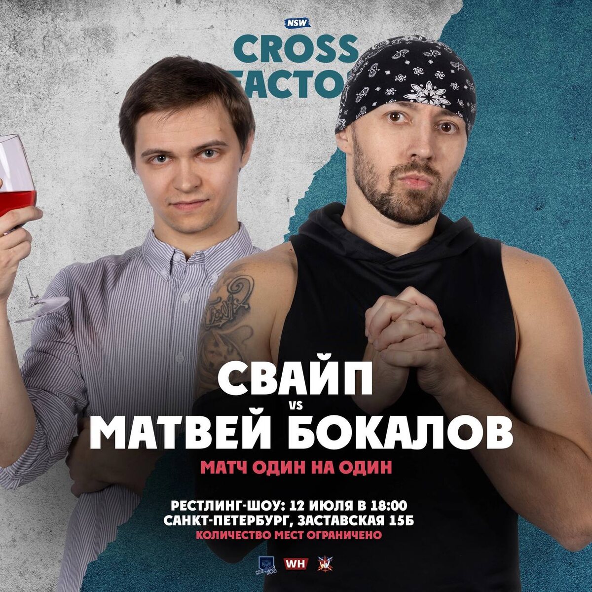 💥 СВАЙП ВОЗВРАЩАЕТСЯ ПОСЛЕ УЛЬТИМАТУМА ✅ БИЛЕТЫ: https://spb.qtickets.events/174504-nsw-cross-factor-12-iyulya-2025-restling Свайп проведет первый матч после шоу Ультиматум. Его соперником станет недавний дебютант Матвей Бокалов. Матч один на один: Свайп против Матвея Бокалова ———————————————— NSW CROSS FACTOR Дата: 12 июля 2025 г. Место: База NSW Двери: 17:45 Время начала шоу: 18:00