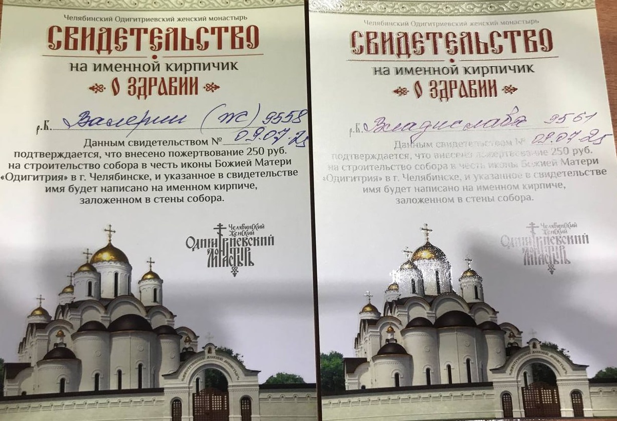 не пов, а рил: мама сегодня купила нам два именных кирпича, которые будут заложены в основу нового собора в Челябинске 🙏🤍