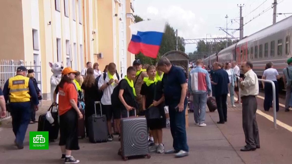 [ Смотреть видео на сайте НТВ ] Петербургские каникулы начались для школьников из Мариуполя. Поезд с гостями из города-побратима прибыл на вокзал в Зеленогорске. На перроне ребят встретили с музыкой и танцами. Всего в Северную столицу приехали 395 учеников с 5-го по 9-й классы и 20 педагогов. Все они в предвкушении насыщенного отдыха, ведь многие возвращаются сюда уже не первый год. Арина Волошина, школьница из Мариуполя: «„Газпром Арена“ самая хорошая. Но вообще я бы хотела посмотреть на разводные мосты. Мне кажется, это очень красиво». Впереди у ребят две насыщенные недели. Это уже третья смена в лагере «Дружных». Ее назвали «Мир начинается с нас». Для школьников из Мариуполя это уникальная возможность увидеть Северную столицу. Петербургские педагоги подготовили разнообразную программу: соревнования, экскурсии и интеллектуальные игры. Школьников ждут Дни экологии, музыки и танцев, профессий, а также чудес и приключений. Кроме того, ребята посетят футбольный матч, на котором «Зенит» с