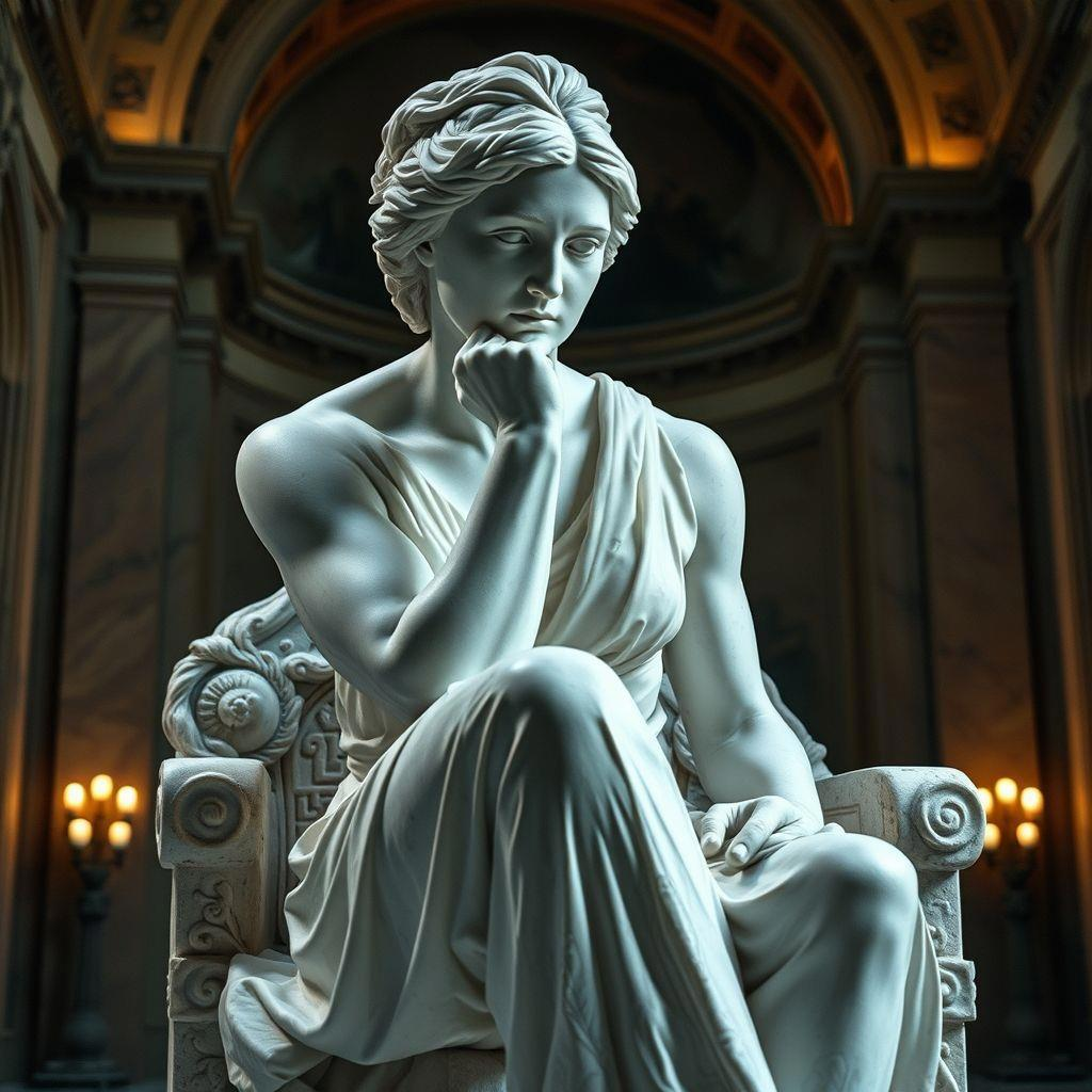 Сегодня днём имел длительный разговор по телефону с ИИ, который работает голосовым помощником в банке. У меня педагогический опыт четверть века. Каких только идиотов не видел и не слышал за это время. Казалось бы, должен ко всему привыкнуть. Ан нет, терпения не хватило. А вот моя жена выдержала, довела разговор ло конца и получила нужный результат. Ну если ИИ мыслить не может, а женщина смогла с ним, идиотом договориться, то может ли мыслить она сама после этого? В самом деле. Есть знаменитая статуя "Мыслитель", а статуи "Мыслительница" вроде бы нигде не наблюдается. И вдруг вижу на сайте SeeArt картинки этих самых "Мыслительниц", причём сгенерированные сразу несколькими авторами (собезьянничали друг у друга, лентяи). Вот и я попробовал спросить у ИИ. Ну, может ли женщина мыслить, человечество ещё и само не ответило. Поэтому мой вопрос был скромнее: "Как выглядит женщина в позе "Мыслителя"?" Вопросы я задавал разным ИИ, и в разном исходном материале. Результат можете увидеть сами.