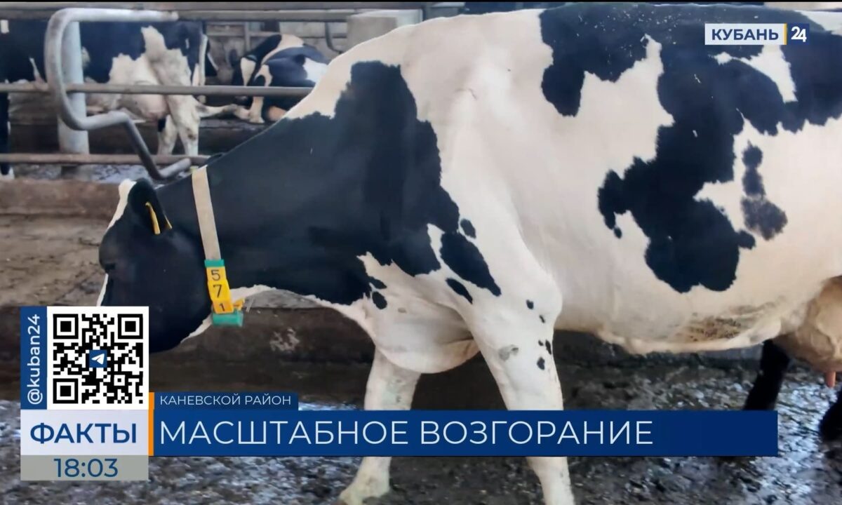 Видео канала «Кубань 24» По данным МЧС, площадь пожара в станице Каневской составила 180 кв. м. Пожарные и 12 собственных расчетов сельхозпредприятия работали над ликвидацией огня. «Сначала начали тушить огнетушителями и пожарными расчетами, которые на ферме есть. Потом потянули из растениеводческих подразделений пожарные расчеты, вызвали МЧС, пожарных, организовали подвоз воды, задействовали все гидранты», — рассказывает заместитель генерального директора агрофирмы «Племзавод Победа» Семен Гамаюнов. Очаг возгорания — навес для хранения подстилочной соломы. Распространялось пламя быстро, но больше беспокоило сильное задымление. Искры перелетели на укрытие силосных ям. Неподалеку от них находятся и сами коровники, где содержится около 3 тыс. племенных животных вместе с молодняком. От такого количества угарного газа они могли пострадать. Их пришлось эвакуировать. «Хозяйство было вынуждено остановить уборочную компанию, чтобы освободить дополнительных сотрудников и технику и направить на