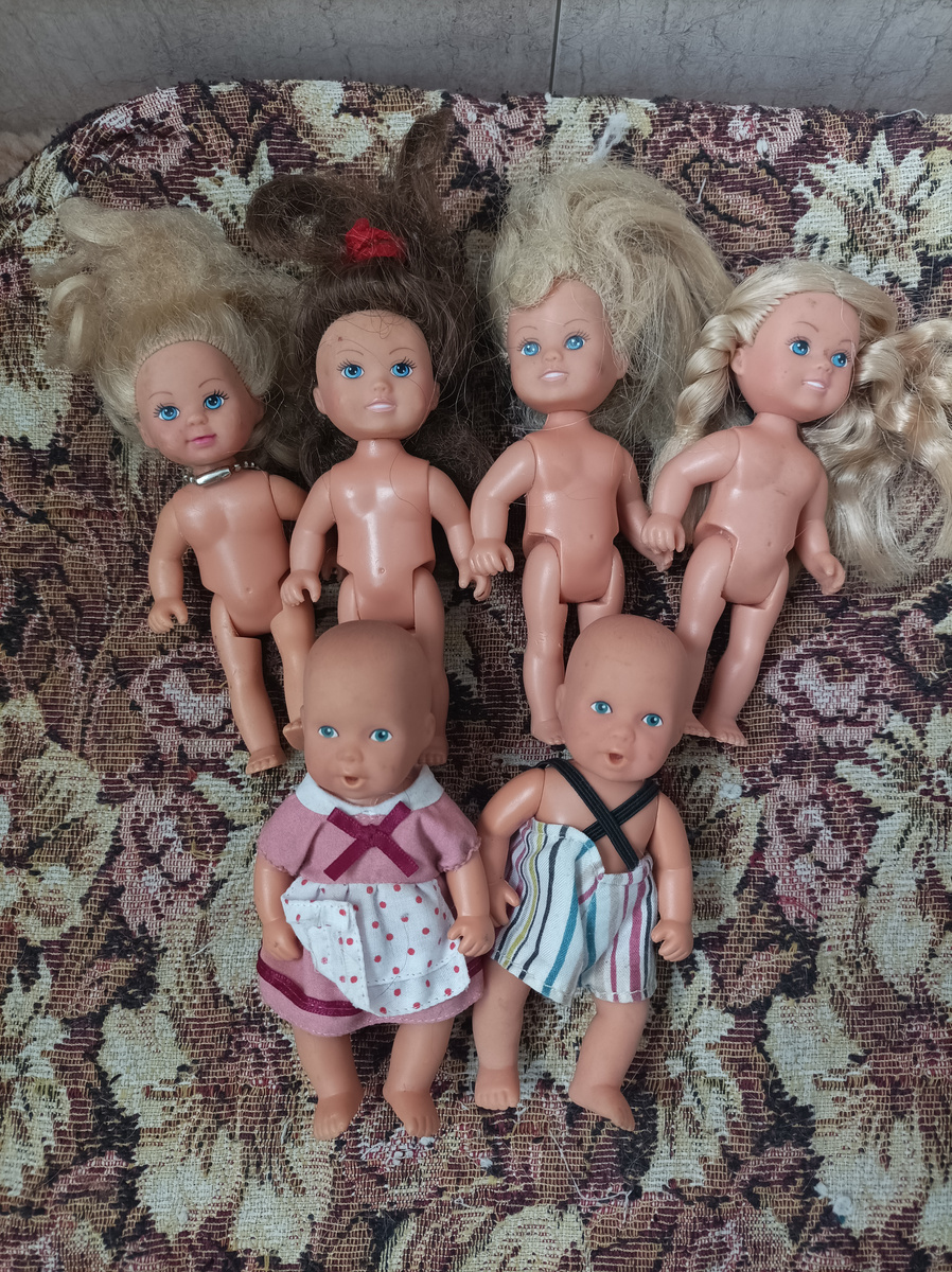 Когда-то давно мне отдали кучку куколок. Не совсем моего формата, но очень милых Состояние было, скажем так, на троечку. Всех отмыла, причесала, одела. Но прошивочка так себе, да и волосы свалялись. Перепрошить и переодеть. А то одеты как попало, на скорую руку Пока разбиралась с этими, прикупила на авито еще трёх) Первая девочка с шарнирными ногами. Очень интересная. Ее тоже перепрошила и переодела. Две другие в хорошем состоянии, им решила свои волосы оставить. Это я все в поисках Келли. Иногда встречаются, но цена кусачая. А куклы между тем селятся. Не моего формата, но активно. И это еще не всё. Опять, самым неожиданным образом, меня нашла еще одна кучка кукол)