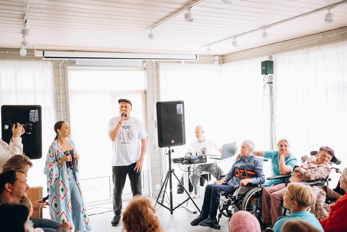Известный актёр и музыкант Гоша Куценко посетил Дом милосердия кузнеца Лобова в Поречье-Рыбном, чтобы познакомиться с подопечными и коллективом благотворительной организации. Вместе со своей командой артист провёл день, наполненный теплом, общением и надеждой.