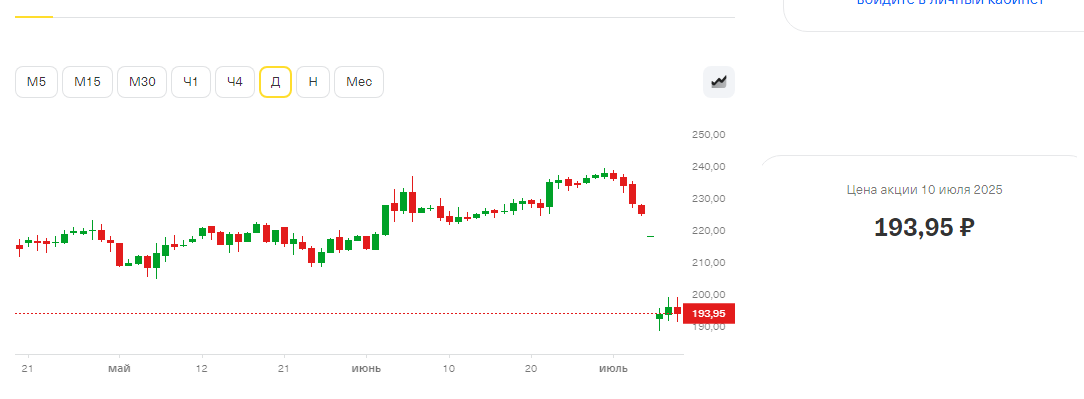 У компании МТС, произошла дивидендная отсечка, цена упала и теперь можно прикупить за 193 рубля
