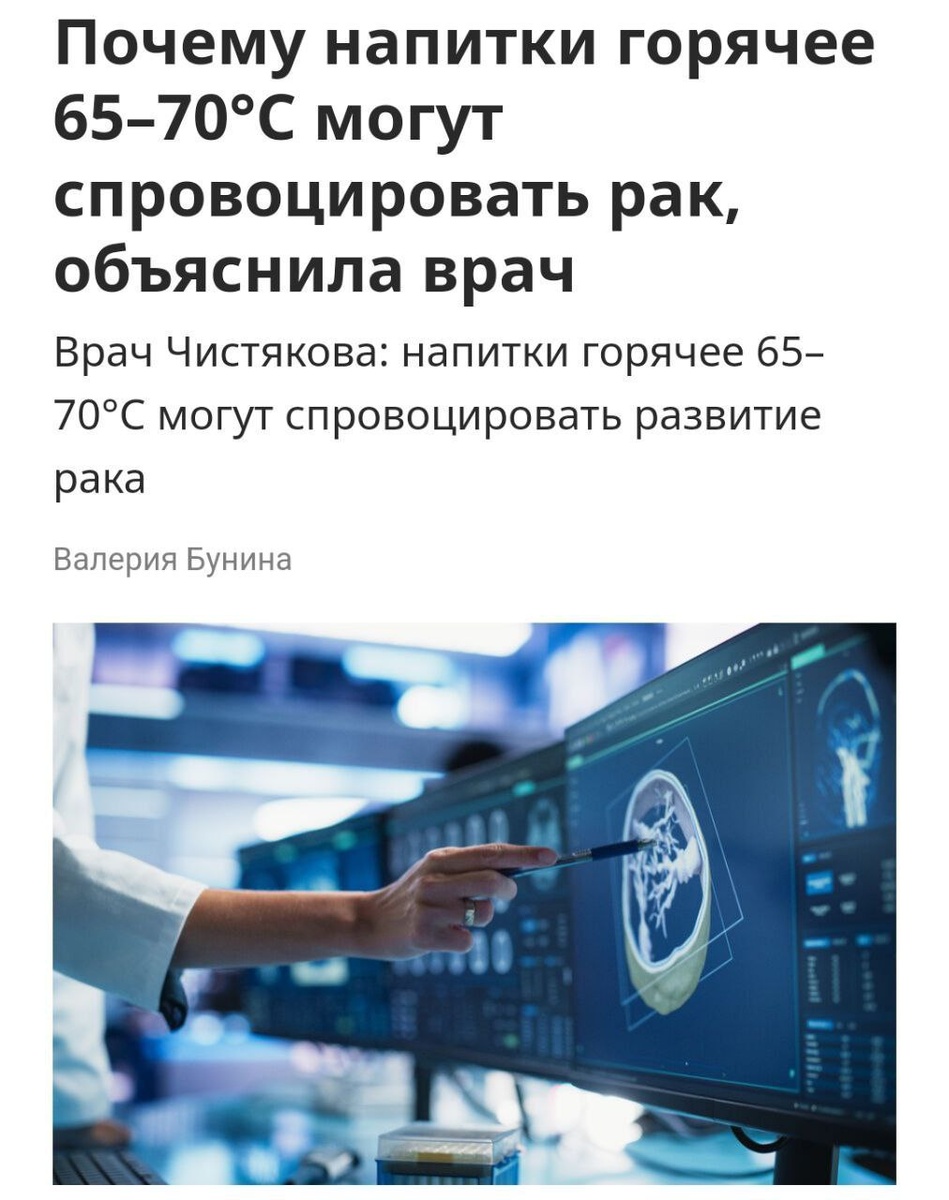 Напитки горячее 65–70°C повышают риск рака желудка и пищевода, вызывая микроскопические ожоги и воспаление слизистой.